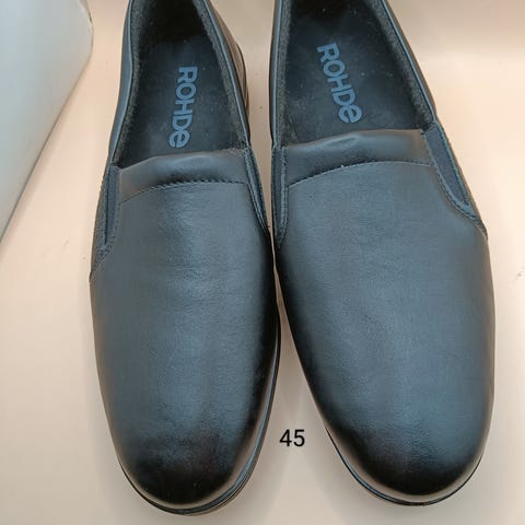 Et par sorte klassiske sko, syet i læder, med snøring og lav hæl. Skoene har et traditionelt design og er ideelle til formelle anledninger eller som hverdagssko for dem, der foretrækker et sofistikeret udseende. Sko størrelse er 45. De kommer i en original kasse med tydelig mærkning fra Rohde.