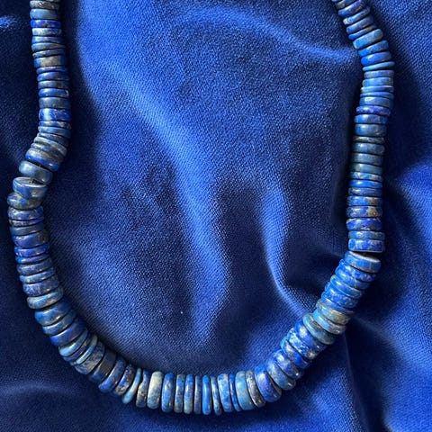 Dobbeltradet lapis lazuli halskæde, L. 57 cm