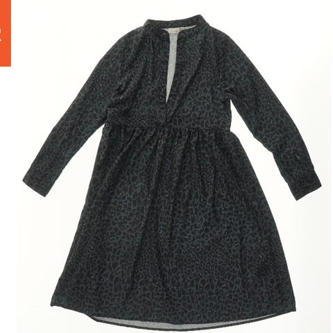 Kjole med leopardprint designet af Soft Gallery. Kjolen har lange ærmer og en høj hals med en lille flæse. Det materiale har et leopardmønster i beige og sort. Manchetter har en sort ribkanter med et hvidt stribet detaljer.