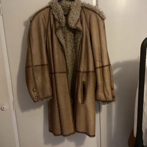 Rulams jakke/ frakkei brun farve i størrelse S. Frakken har hætte og er foret med blødt, tykt pelsfor indvendigt, som går hele vejen gennem krop og ærmer. Modellen har gennemgående lynlås foran og to skrålommer. Velegnet som varm overtøjsfrakke til køligt vejr. På billederne ses også matchende luffer i samme stil og materiale. Luffer kan bruges af mænd også. Jakke er hel og uden slid/huller, men har små røde pletter, som sikkert kan renses væk. Kan afhentes og prøves i postnummer 4070 i bytte for noget guf og kaffe.