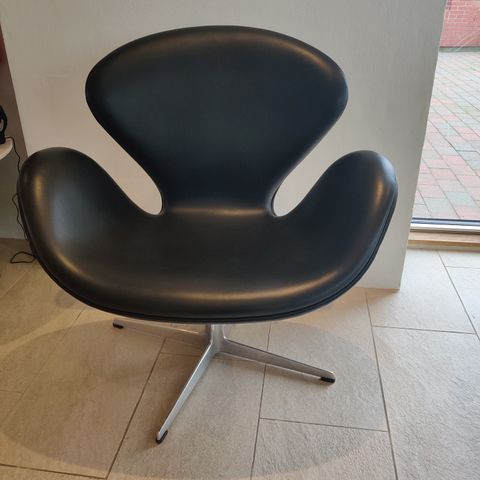 Fritz Hansen 3320 Svanestole hvid semi-anilin læder (original polstring)