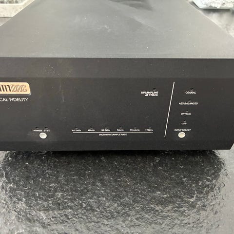 Klassisk vellydende dac fra velrenommerede Musical Fidelity. Spiller fejlfrit (har dog aldrig brugt usb indgangen, kun coax og optisk).