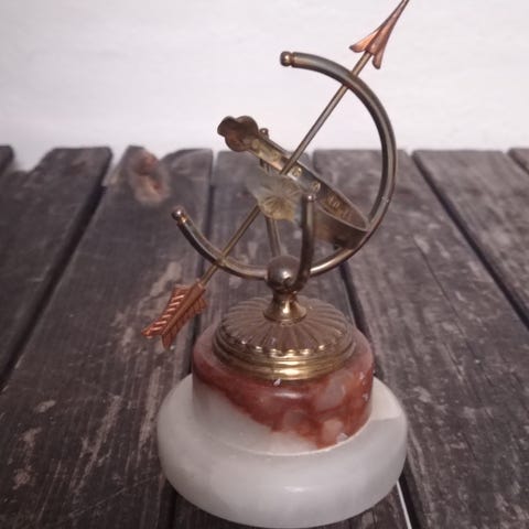 Dette er et dekorativt solur med en metalramme formet som en kugle, monteret på en kvadratisk base lavet af marmor. Base har en plakette på forsiden med inskriptionen 'Gor Sons Royal Greek Theatre'. Soluret har en pil på den øverste del af ramme og udsmykning på toppen af basen. Den måler 28,5 cm i højden og er snarere en replika end et funktionelt solur.