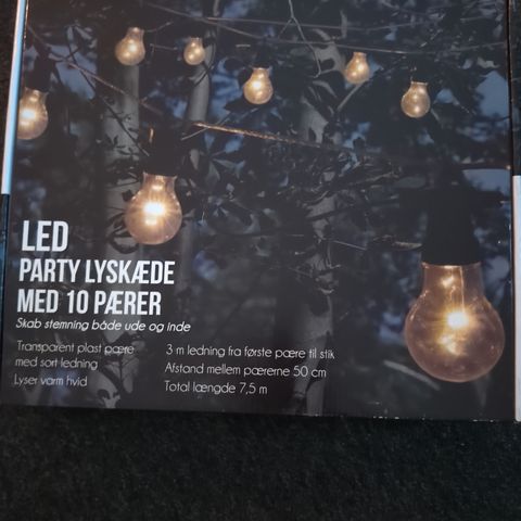Lyskæde med 144 LED-lys beregnet til indendørs og midlertidig udendørs brug. Længden er 600 cm og lysene udsender en varm hvid glød, hvilket gør det ideelt til festlige dekorationer eller hyggebelysning. Produktet kræver en elektrisk tilslutning og har en IP44 klassificering mod vandstænk. Tags: lysslynge, festlys, hvid, LED.