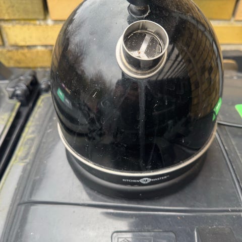 En elektrisk vandkedel med en kapacitet på op til 2 liter. Den er fremstillet i rustfrit stål med en sort plastik håndtag. Kedlen har måleindikatorer på siden og et aftageligt låg. Den står på en rund base der har en integreret ledning med en EU-stik. Mærket Sandström er indgraveret på bunden af kedlen.