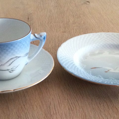 Mågestel Kaffekopper M /Underkopper Med Guldkant 9 Stk