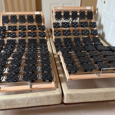 Etageseng, kan også laves om til 2 enkelt senge, med madrasser, ingen pletter eller andet, kun brugt som gæstesenge til vores børnebørn, så står som nye.