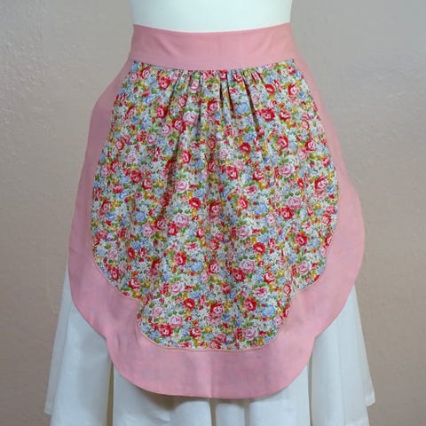 Lavet af 100% bomuld i god kvalitet. For at bevare farve og form, vil jeg anbefale at forklædet vaskes på finvask max 40 grader og at det lufttørres. Det hvide skørt er ikke med i prisen.