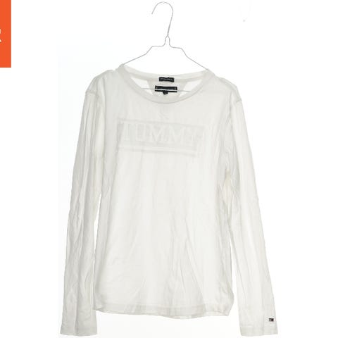Langærmet t-shirt i blå farve med Tommy Hilfiger logo på forsiden. Trøjen har en rund halsudskæring og lange ærmer. Logoet består af teksten TOMMY HILFIGER og et rektangel i blå, hvid og rød farver. På det nederste af ærmet er der et lille Tommy Hilfiger logo.