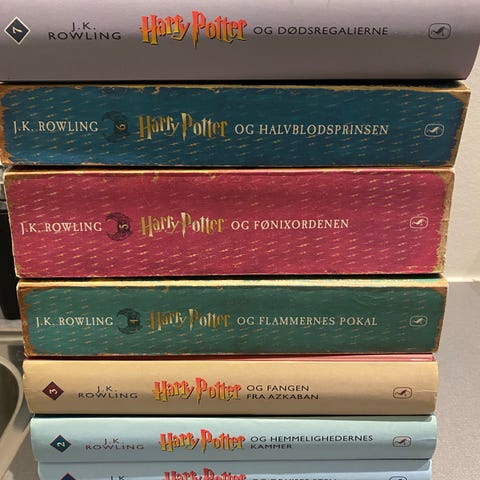 Harry Potter 1-7, komplet , J K Rowling , genre: fantasy, 1-4 Hardcover, pæne. 5-7 Softcover med nogen slid.