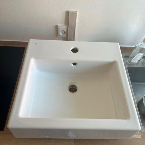 Bmrk hane skal monteres i væggen over - der er ikke hul i vasken til hanetap