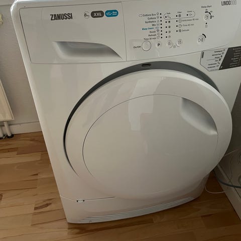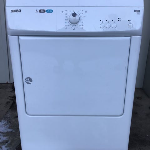 Zanussi tørretumbler med aftræk. Modellen er en aftrækstumbler, hvor fugtig luft ledes ud gennem en aftræksslange. Betjeningspanelet har drejeknap til programvalg og flere funktionsknapper på fronten. Egnet til tørring af almindeligt tøj og tekstiler i husstande, hvor der er mulighed for udluftning via aftræk.