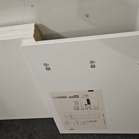 To hvide Ikea komplement hylder, der passer til PAX skabe. 100x58cm. Den ene er som ny, den anden har et par ridser og nogle farvepletter, som ikke er forsøgt fjernet.