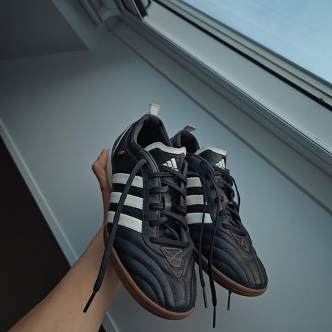 Skoene står som nye, brugt få gange indendørs af min søn til idræt.