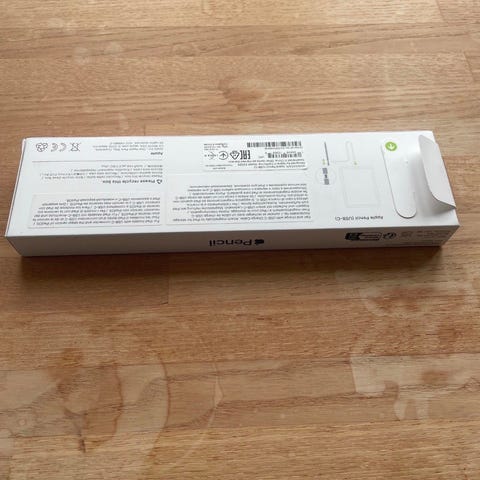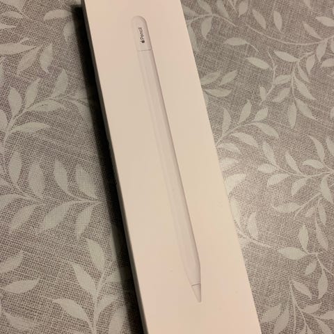 Apple Pencil 1. generation stylus i hvid. Digital pen beregnet til brug med kompatible iPad-modeller. Pencillen har udskiftelig spids og oplades via Lightning-stik under dækslet i toppen. Leveres med etui med plads til pen og tilbehør.