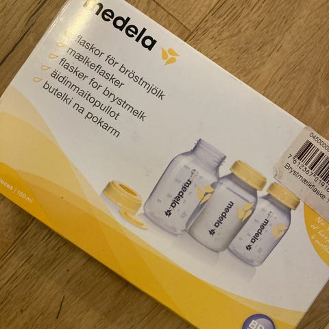 Medela sutteflasker, Philips Avent flaskesterilisator og MME rejsebeholder.