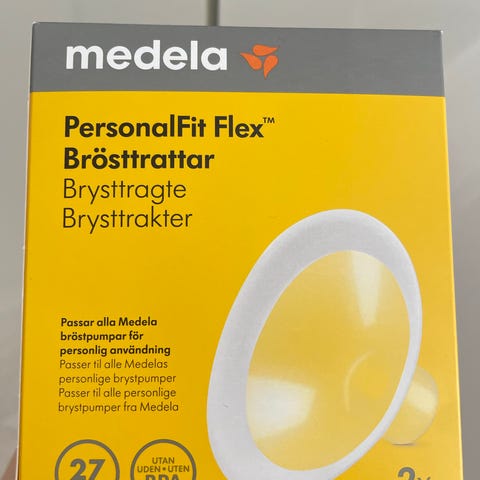 4-5 medela symphony sæt med ledninger og brysttragter flest i 24mm, 4stk i 21mm med silikonekant og 2 i 27mm.