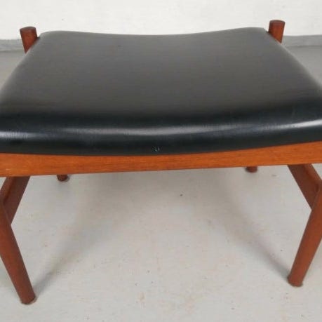 Fin vintage skammel i teak med koniske ben i klassisk dansk mid-century stil (ca. 1950–70’erne).