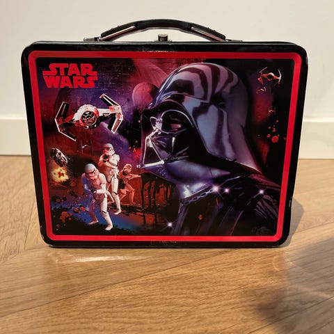 Star Wars Rebels madkasse i metal med motiver fra serien på begge sider. Kassen har sort grundfarve med orange detaljer og håndtag. Indvendigt er den i blank metal med præget Star Wars-illustration i låget. Egnet til opbevaring af madpakke eller småting til børn eller fans af Star Wars-universet.