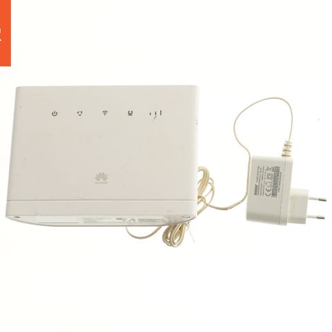 Huawei WiFi 7 BE3 router i hvid. Trådløs router med flere eksterne antenner og bagtilslutninger til netværkskabler. Egnet til hjemmenetværk med WiFi 7-understøttelse og kablet netværksforbindelse til f.eks. computer, tv eller andre enheder. kan sættes sammen og bruges som Mesh. 1x2.5GE + 3x1GE,