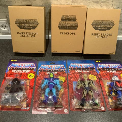 Samlet salg af disse tre figurer fra Super7. Masters of the Universe Frozen Teela, Shadow Orko og Crystal Man-At-Arms actionfigurer. Figurenes design er baseret på karaktererne fra Masters of the Universe-universet og leveres i original blisterpakning med illustreret bagkort. Hver figur er udstyret med tilbehør som vist på emballagen og er beregnet som samlerobjekt eller legetøjsfigur til leg og udstilling.