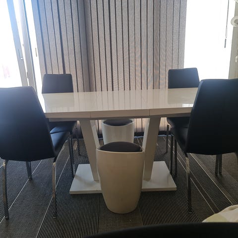 Retro sæt bestående af bord og 4 stole. Det er et praktisk og stilfuld og pladsbesparende sæt. Brugsspor men stadig funktionelt og pænt