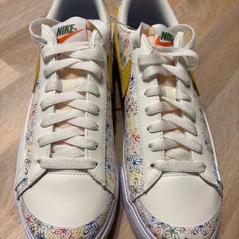 Nike sneakers i størrelse 36. Skoene er i grå med pink detaljer, herunder snørebånd og logo. Overdelen fremstår som en kombination af tekstil og syntetisk materiale. Ydersålen er i gummi med mønster, der giver greb ved almindelig hverdagsbrug. Velegnet som fritids- og hverdagssko.