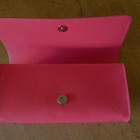 Clutch, Aura, Super flot clutch der måler 29x16. Fine lommer indvendigt, magnetisk lukning og strop der kan trækkes ind og ud. I skind i sø grøn/petroleum.