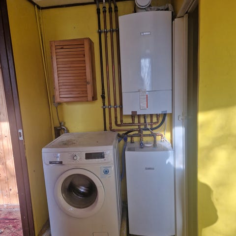 Bosch gaskedel med tilhørende varmtvandsbeholder