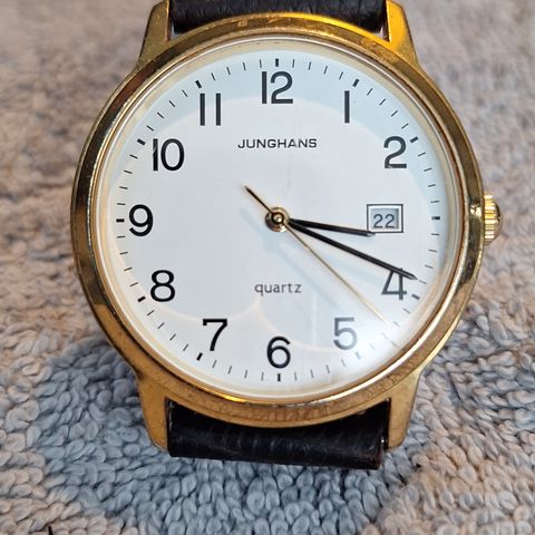 Fint Junghans quartz urværk med dag og dato ( tyske ugedage) Måler 36 mm. Skjult krone. Mont på en stållænke der passer op til 23 cm håndled. Nyt batteri isat.