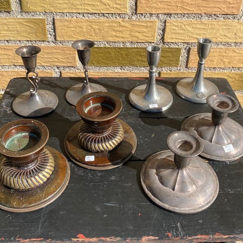 Charmerende, fine lysestager i forskellige metaller: