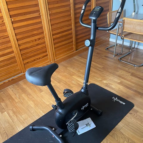 InShape FB500S motionscykel i sort. Motionscyklen har justerbart sæde og styr samt pedaler med rem. Velegnet til indendørs konditionstræning i hjemmet, hvor modstanden kan tilpasses efter behov. Stabil konstruktion med bred base for bedre balance under træning.