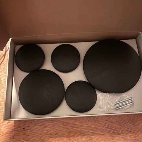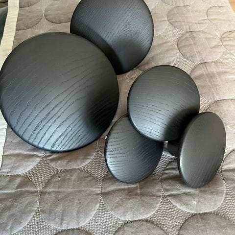 Sælger et flot sæt originale Muuto “The Dots” vægknager i træ (valnød-look) i forskellige størrelser.