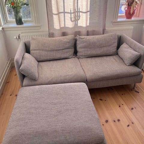 Velholdt 3 personers Söderhamn sofa med aftageligt mørkegråt stof sælges. Puf medfølger. Kommer fra røgfrit hjem uden dyr. Betræk kan vaskes i vaskemaskine. Vasket for nyligt. Nem at vedligeholde. Købt for et par år siden til omkring 6500kr