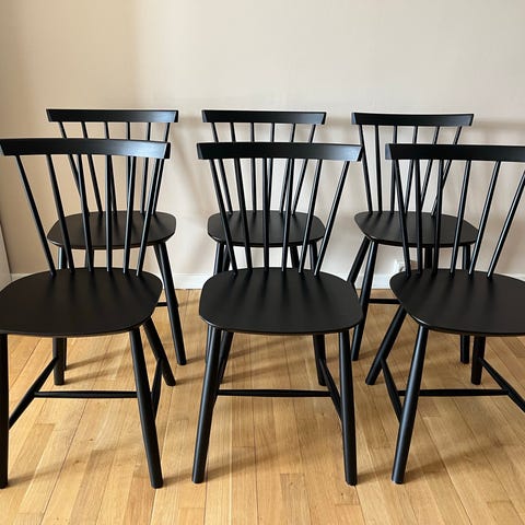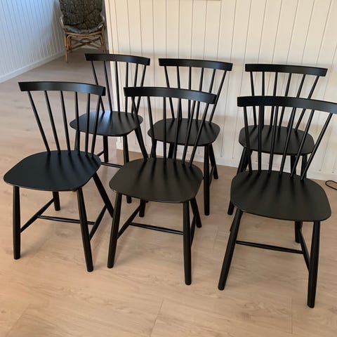 Alle stolene har hver deres patina, med lidt afskallet maling hist og her.