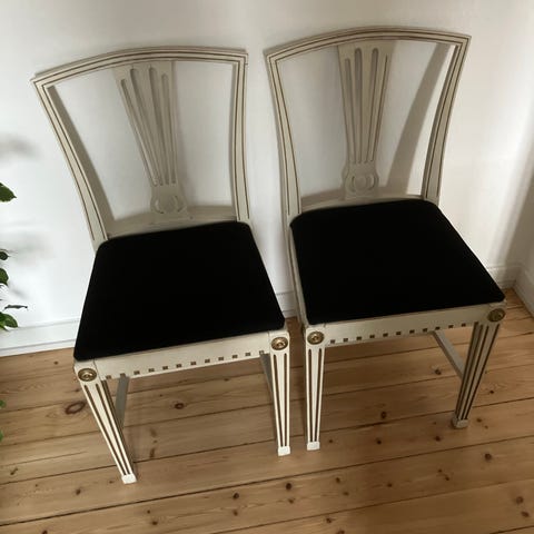 Virkelig flotte, man sidder godt - dog er den ene stol gået i stykker på sædet. Derfor koster de kun 200kr i alt.