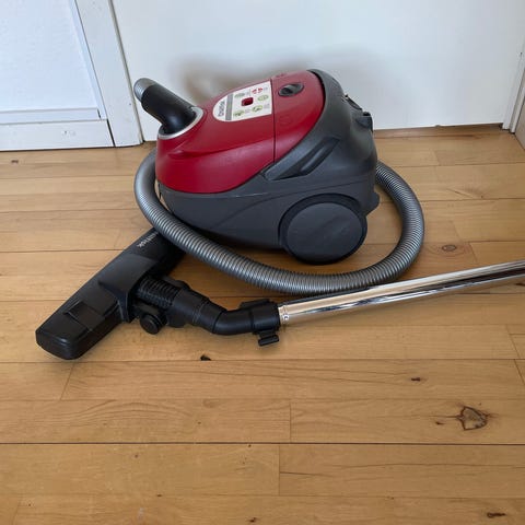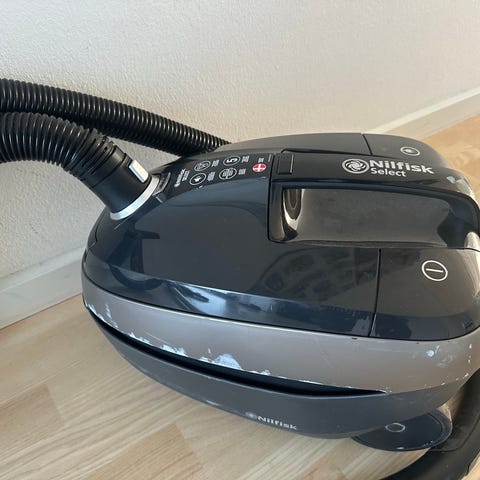 Nilfisk Select støvsuger i rød farve. Modellen er en pose-støvsuger med slange og mundstykke, som egner sig til almindelig rengøring af gulve og tæpper i hjemmet. Der medfølger standard mundstykke fra Nilfisk samt støvsugerposer fra Salling, som passer til Nilfisk-modeller. Velegnet til daglig støvsugning af hårde gulve og tæpper i bolig og mindre kontormiljøer.
