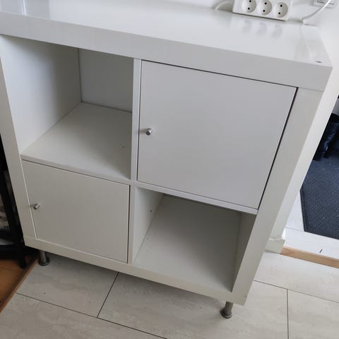 Fin Ikea reol som passer til de gamle Ikea kasser, dvs. dem med 28cm i dybden, de nye kan også bruges men de stikker ud.