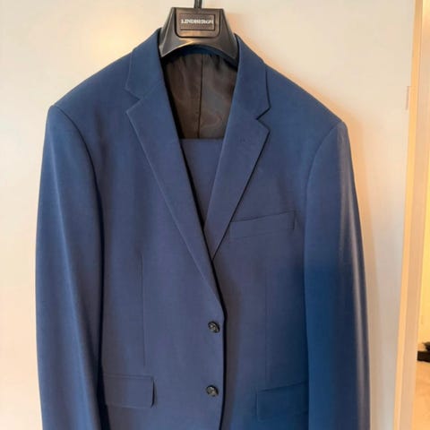 Lindbergh White jakkesæt og skjorte, begge slim fit herre blå polyester str. 50