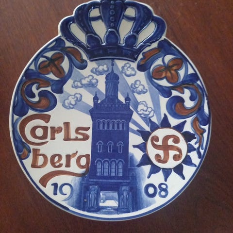 Carlsberg porcelænsplakette 1908 blå og hvid
