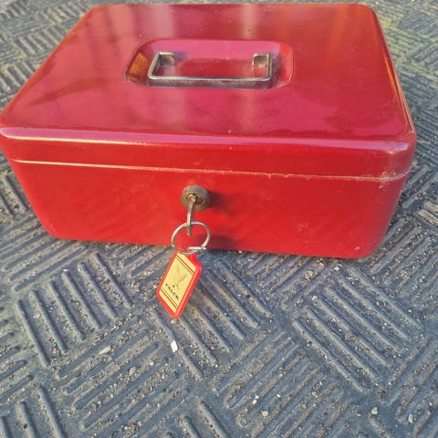 Rød pengekasse i metal
