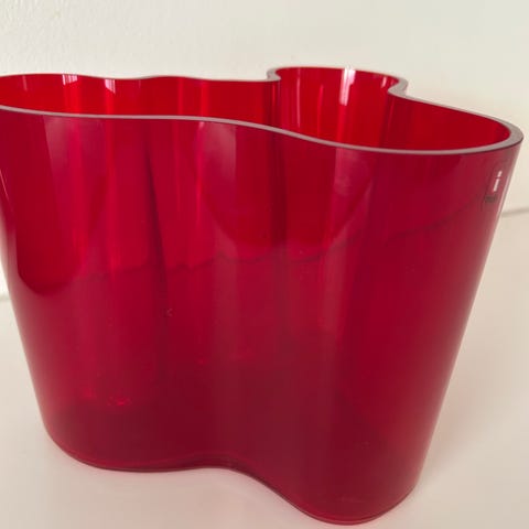 Iittala Aalto vase i klart glas. Vasen har den karakteristiske organiske, bølgende form, som kendes fra Aalto-serien. Egnet til blomsterdekorationer eller som enkeltstående glasobjekt i indretningen. 16 cm høj, helt som ny fra ikke-ryger hjem