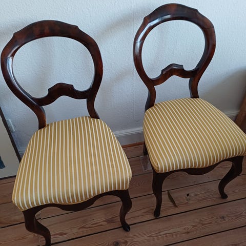 6 rokokostole sælges. 2 med armlæn og 4 uden