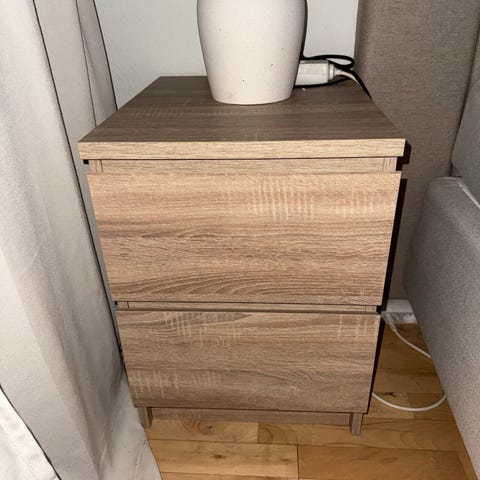 Jeg sælger fem små kommoder eller sengeborde 'Limfjorden' fra Jysk. De kan bruges til både sengeborde, kommoder (kan sættes sammen), eller fx som understel m opbevaring til en ekstra høj seng på det lille teenageværelse.