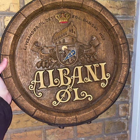 Albani Tuborg Top Carlsberg øltønder vægplader i brun trælook. Runde dekorationsplader med relieflogoer og tekst fra de forskellige danske ølmærker. Velegnet som vægdekoration i bar, køkken, opholdsrum eller samling af ølmemorabilia.