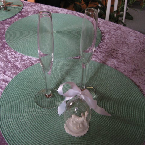 Glasene har en elegant form med en smal top og bredere bund.