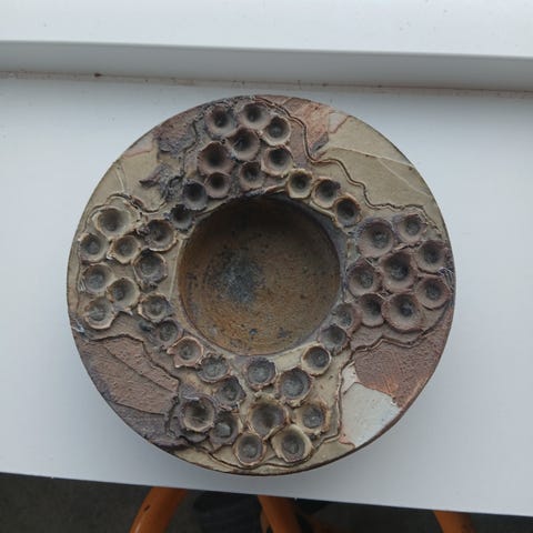 Produktet er en sættet af to keramiske lysestager med en glat overflade og dekorative blå mønstre. Høj og cylindrisk form. Hvid bund.