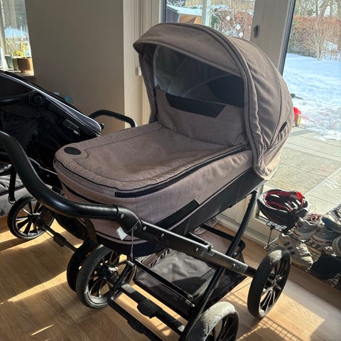 Barnevognen kommer fra røg- og parfumefrit hjem. Den har altid stået indenfor, når den ikke blev brugt.