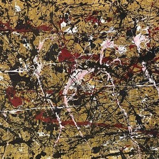 Abstrakt japansk Cobra maleri på lærred af den japanske kunstner Yoshio. Motivet består af organiske og figurative former i overvejende hvide, pastel og sorte nuancer.