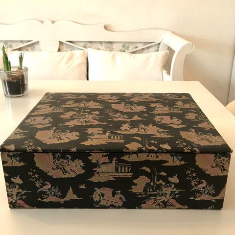 Smuk håndskåren trææske af en krigsveteran. Æsken er foret med rød velour indvendigt. Se billeder for yderligere oplysninger.